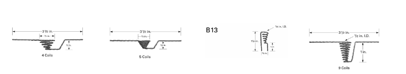所示图片仅供参考,实际产品会根据所选线材类型而有所不同。每种型号适用的线材类型均在其部件编号的后缀中注明。例如,B1-.040W 采用单股直径 0.040 英寸的钨丝制成;B1-3X.025W 则由 3 股直径 0.025 英寸的钨丝绞合制成。