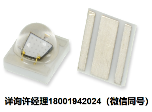 3.5 x 3.5毫米SMD封装,带石英玻璃透镜(< 400纳米)和硅树脂透镜(> 445纳米)