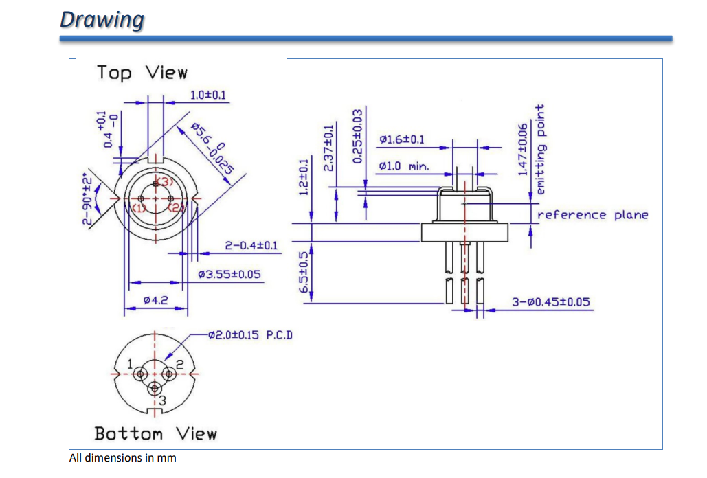 ROITHNER S83500MG 830nm红外单模激光二极管图纸: