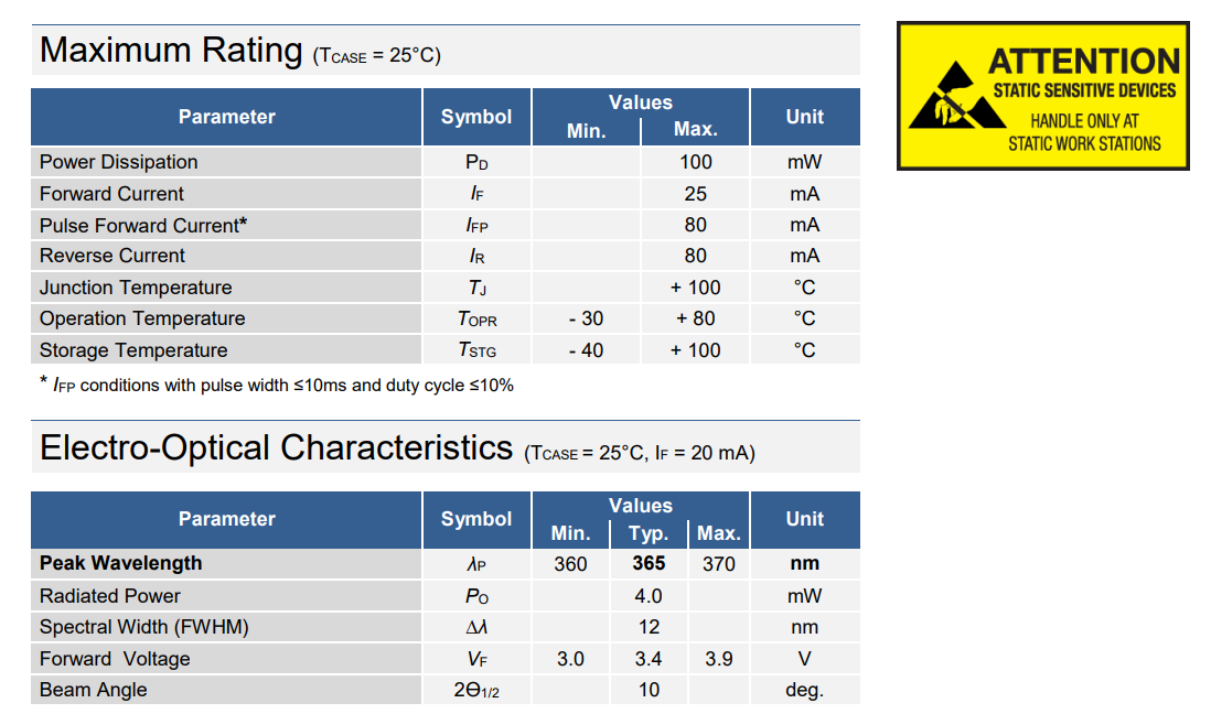 ROITHNER LASERTECHNIK UVLED365-11E发光二极管规格: