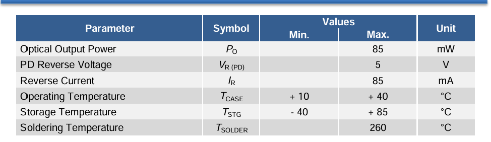 激光特性 (TCASE = 25°C, PO = 70 mW)