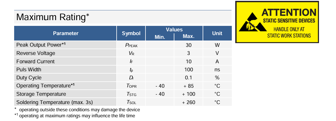 奥地利ROITHNER,QL90V8SM-7,脉冲激光二极管,LDMP 系列高功率脉冲激光二极管,波长905纳米,MOCVD 生长的 AlGaAs 脉冲激光二极管,具有最高可达 85°C 的宽工作温度范围