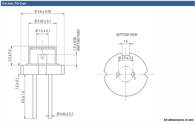 RLT520-300MGE 是一款基于 InAlGaN 结构的绿色多横模激光二极管,典型发射波长为 520 nm,输出功率为 300 mW,最高允许工作温度为 60°C。RLT520-300MGE 采用 5.6 mm TO 型封装。