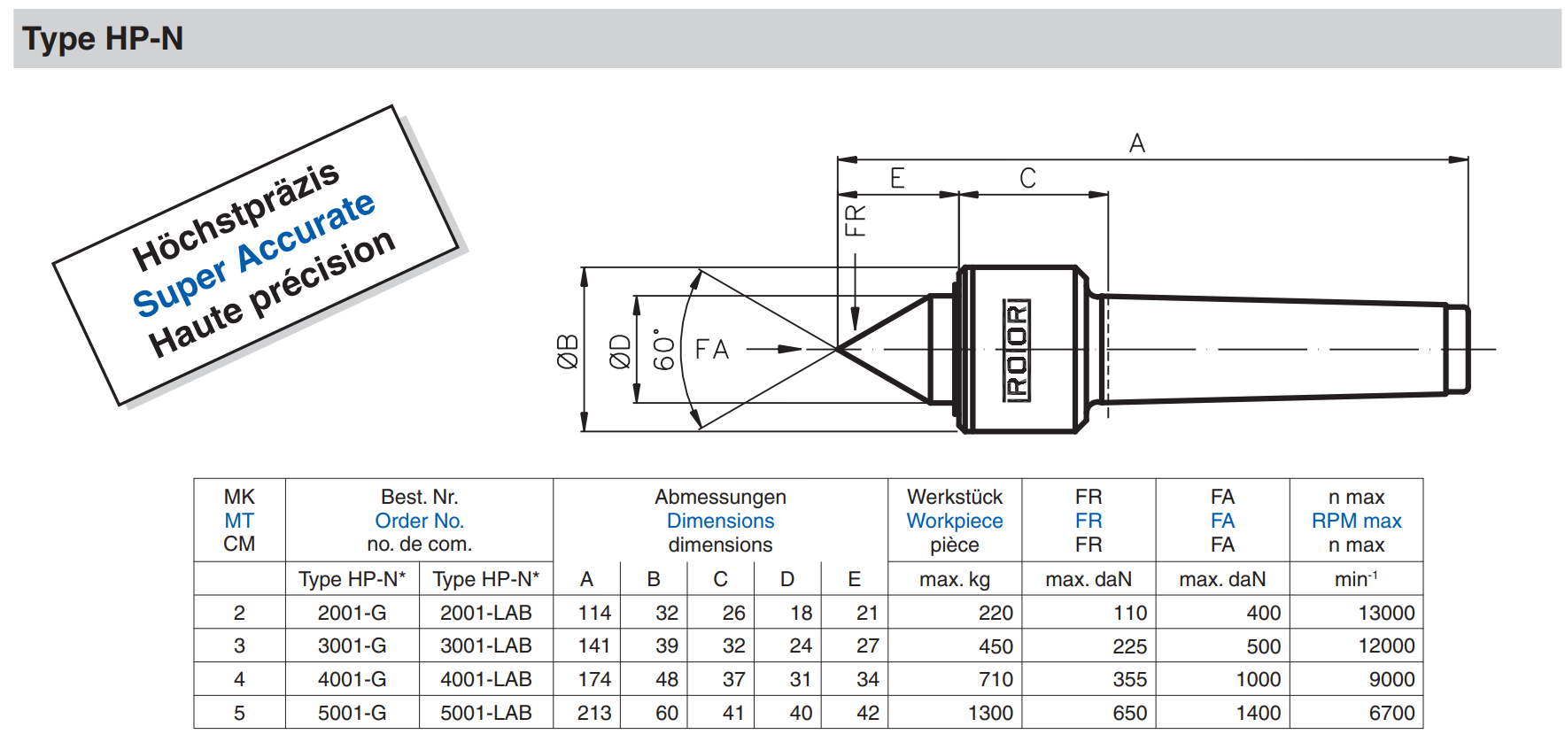 ROTOR TOOL TYPE HP-N-AS 旋转顶尖货号及参数