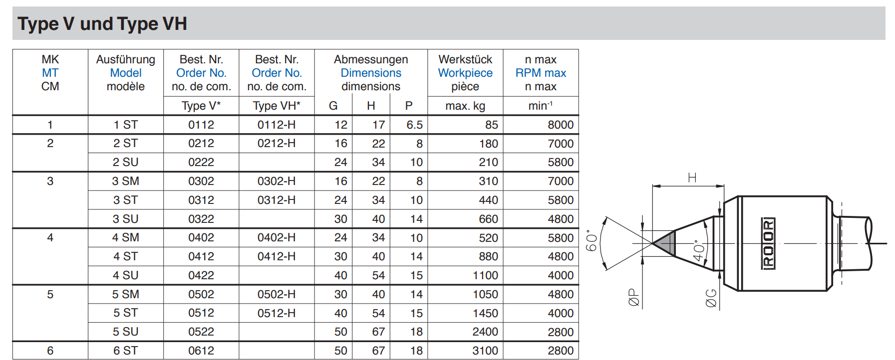 ROTOR TOOL GmbH TYPE V 旋转顶尖订货号