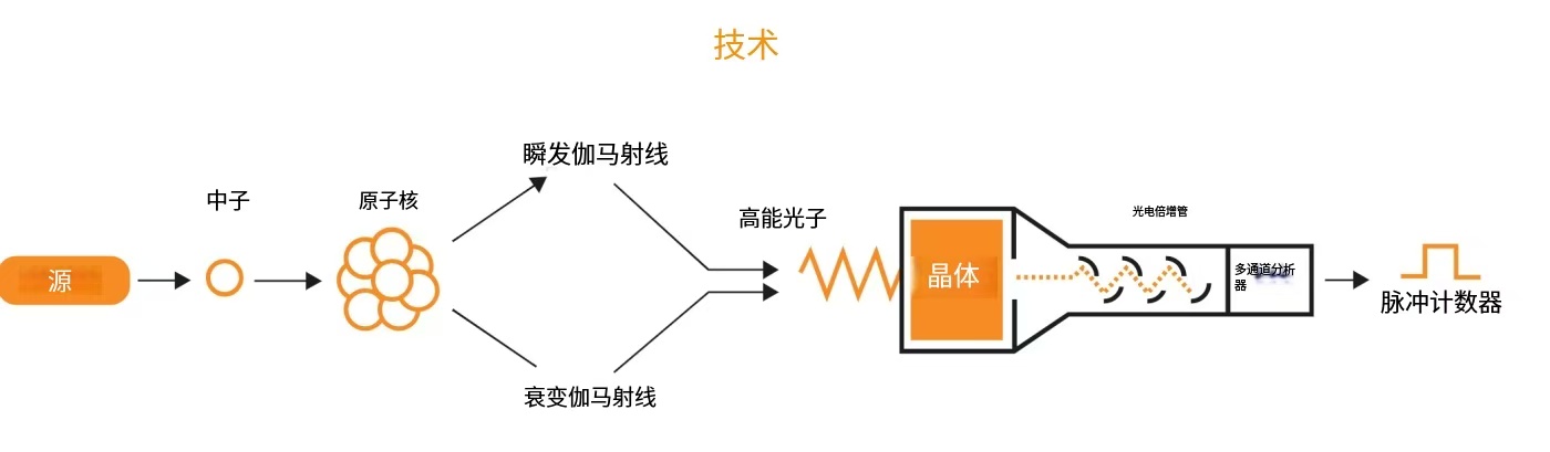 该分析仪使用高能 Am241Be 放射性中子源,可以照射皮带上的所有物料,使物料原子产生暂时激发。这为测量两种物理反应提供了可能: