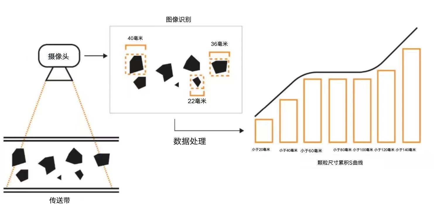 皮带上的物料会被高亮照明,并由高速高分辨率相机持续拍摄。