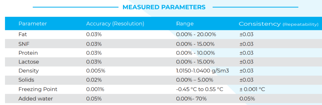 Julie C2 automatic™ 根据牛奶分析的既定标准方法进行校准:
