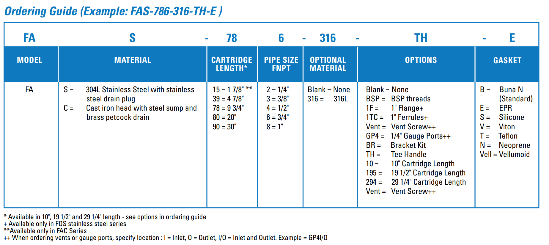 FAS & FAC SERIES Single Cartridge Filter