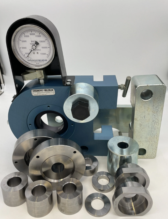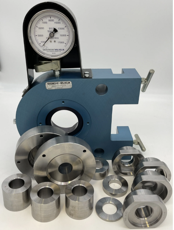 美国 Skidmore-Wilhelm,螺栓测试仪, HS 型便携式螺栓张力校准器,将刀具输出转换为螺栓张力规格,直动式液压称重传感器仪器,设计用于 1-1/2 英寸尺寸的高强度螺栓