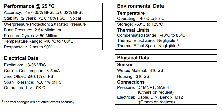 压力输出选项:4-20 mA、0-5 VDC、0-10 VDC