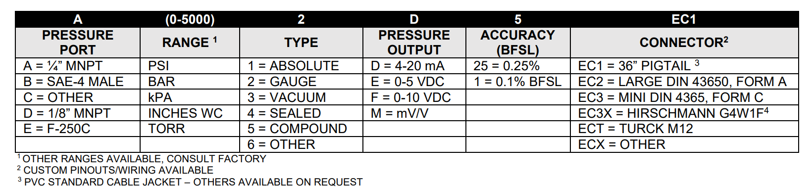 订货指南:3000-B-(0-5000PSI)-2-D-1-EC3X