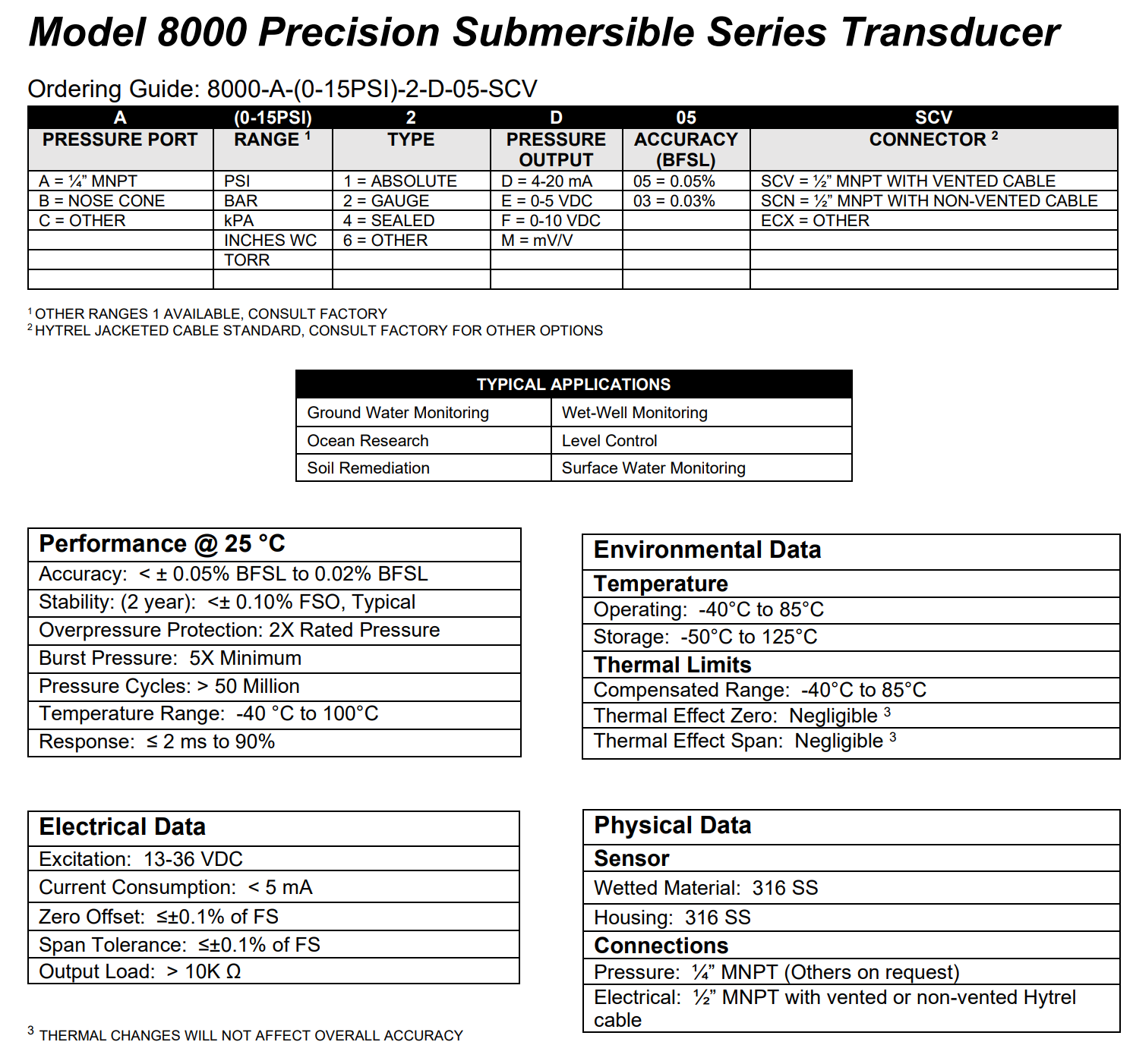 MODEL 8000 PRECISION SUBMERSIBLE SERIES