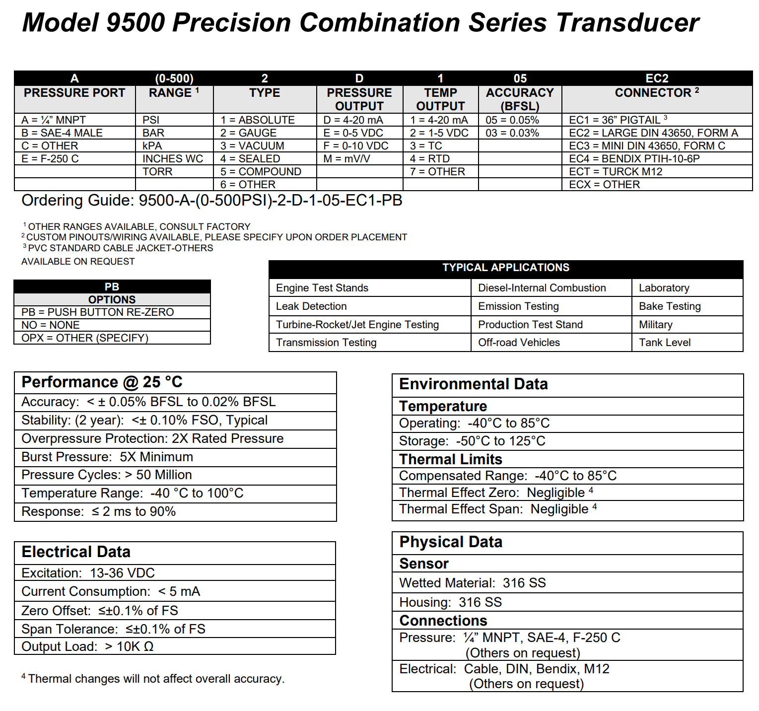 MODEL 9500 PRECISION PRESSURE AND TEMPERATURE SERIES TRANSDUCER