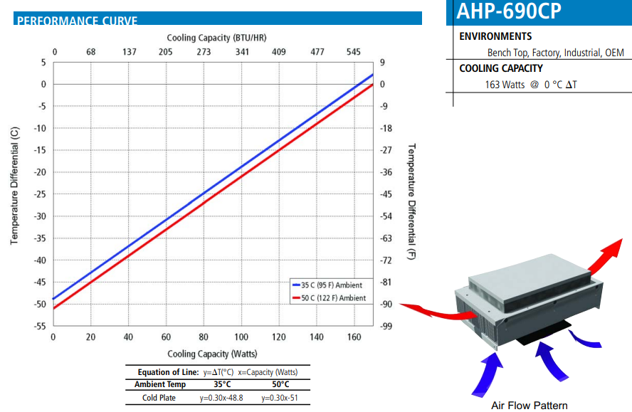 性能等级从TECA最小的冷板AHP-250CP开始,提供46瓦的冷却能力,到AHP-1200CP,提供260瓦的冷却能力。加热是所有型号的可选功能。温度控制器单独出售。