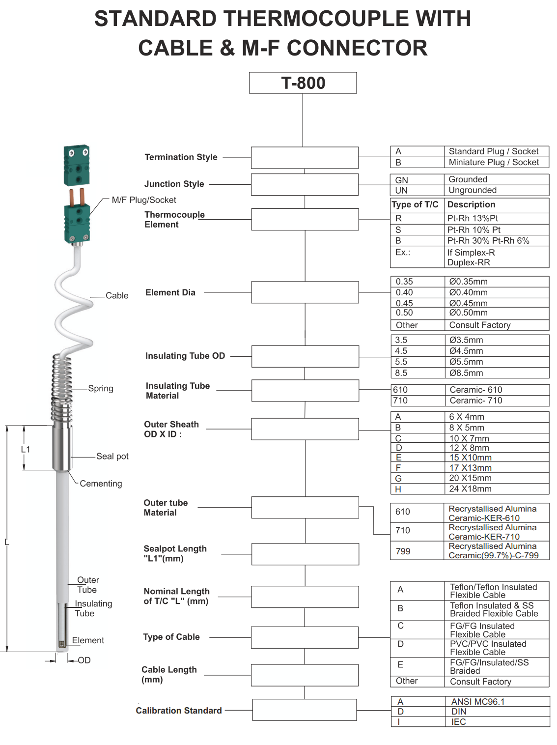 T – 800 STANDARD THERMOCOUPLE WITH CABLE & M-F CONNECTOR