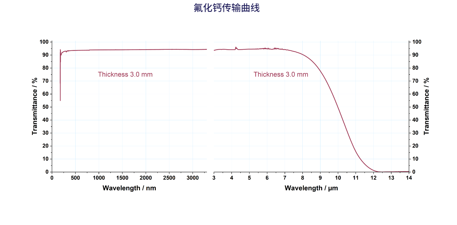 氟化钙视窗因其天然较高的透射率而备受好评,能够承受120°C的反复爆发,实现超高真空(UHV)。氟化钙光学元件提供从紫外线(UV)到近红外(IR)的宽带光学传输,因其无双折射和低激光吸收的优异特性,被广泛应用于多种应用。