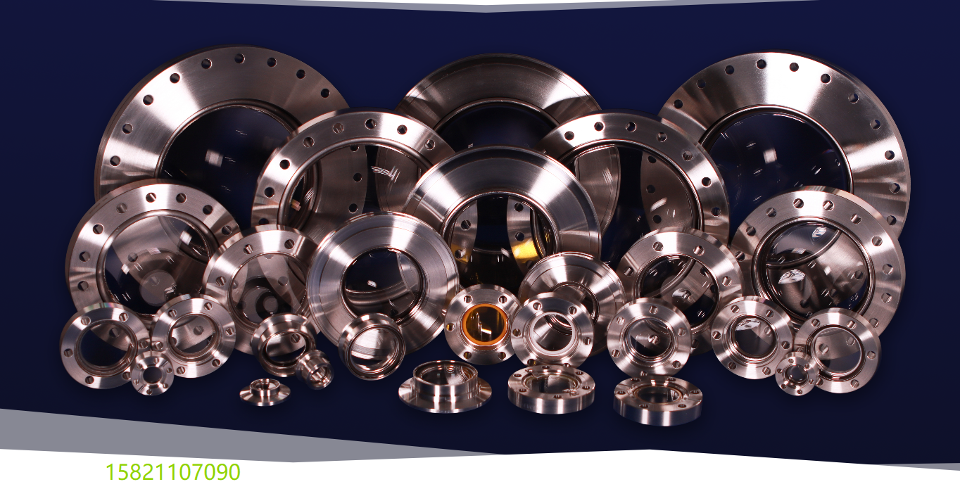 硼硅酸盐(科迪亚尔)玻璃观察窗在可见光范围内具有光学透明性,可用于观察真空系统内部的情况。典型应用包括观察样品转移、检查阀门的开闭状态,或监控工艺过程及活性组件。硼硅酸盐观察窗的制造过程是将玻璃光学元件的边缘与金属旋压件进行气密性密封,形成真空防漏密封,然后将其焊接到合适的真空法兰上。硼硅酸盐玻璃也被称为 8250 或 7056 玻璃。