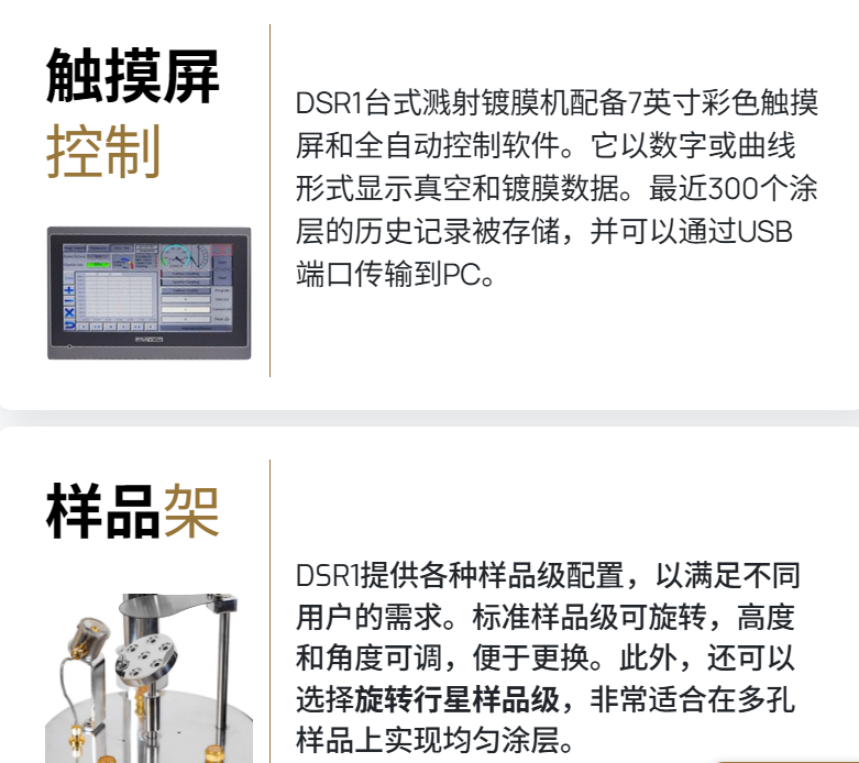 英国VacTechniche,台式溅射镀膜机-DSR1,SEM镀膜机 |溅射镀膜机,能够在非导电或导电性差的样品或设备上对贵金属进行薄膜溅射镀膜:金 (Au)、钯 (Pd)、铂 (Pt) 和金/钯 (Au/Pd)