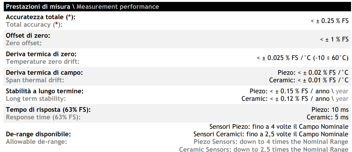 量程:-1 ÷ 0 bar,0 ÷ 1000 bar