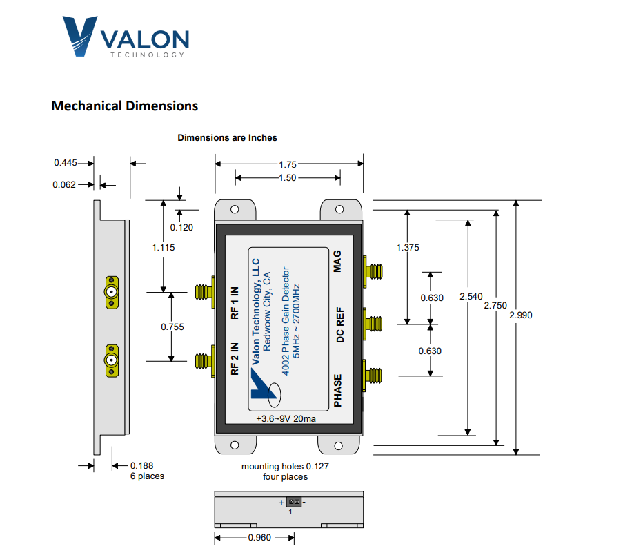 Valon Technology 4002相位检测器模块产品尺寸规格:
