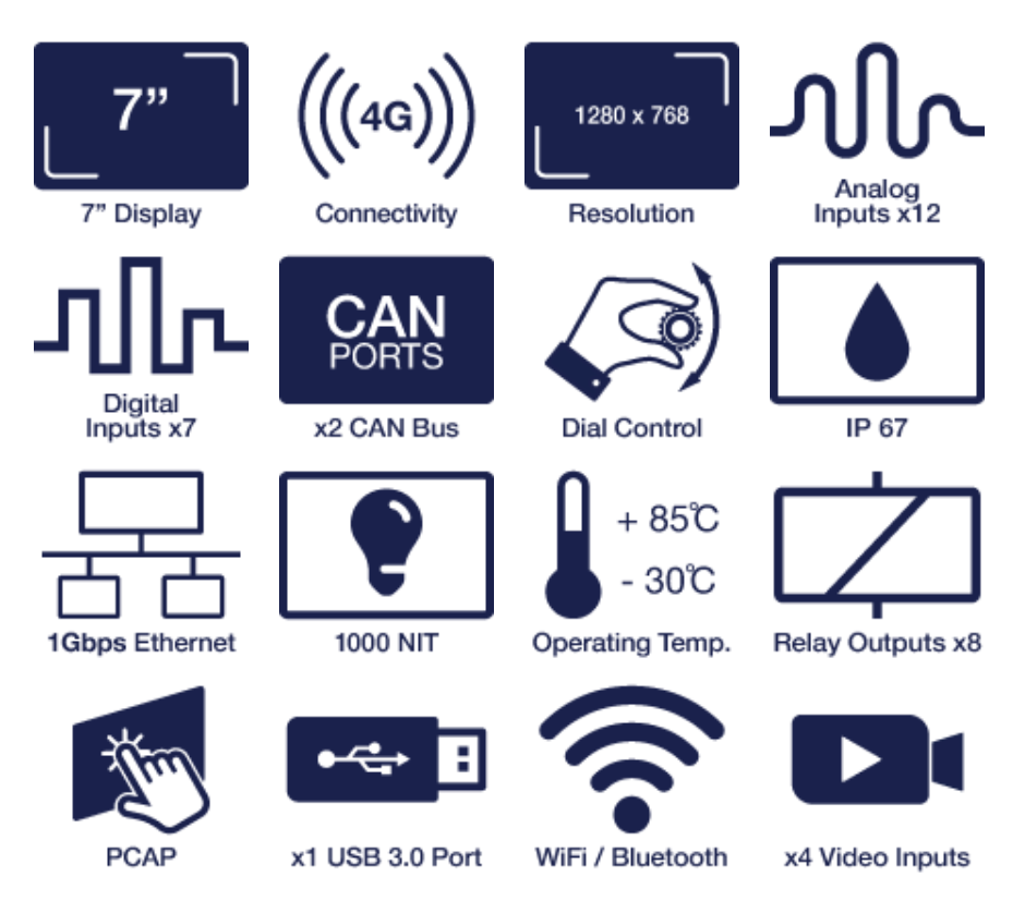 D7是Veethree推出的新一代坚固智能显示解决方案的首款产品。D7配备了来自NXP的iMX8处理器,提供卓越的CPU性能。7英寸高分辨率投射电容触摸屏带来现代化的平板电脑式美学。六个大型背光触觉按钮(支持颜色控制)和旋转编码器简化了屏幕导航操作。