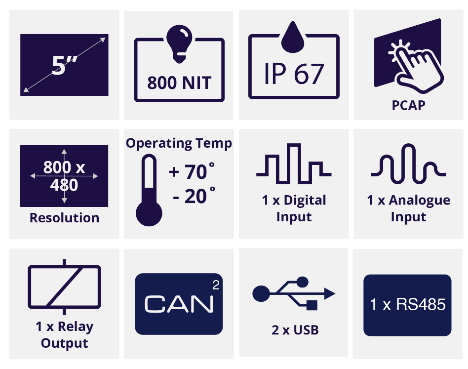 Veethree T5 – 5″ CAN总线显示器特点: