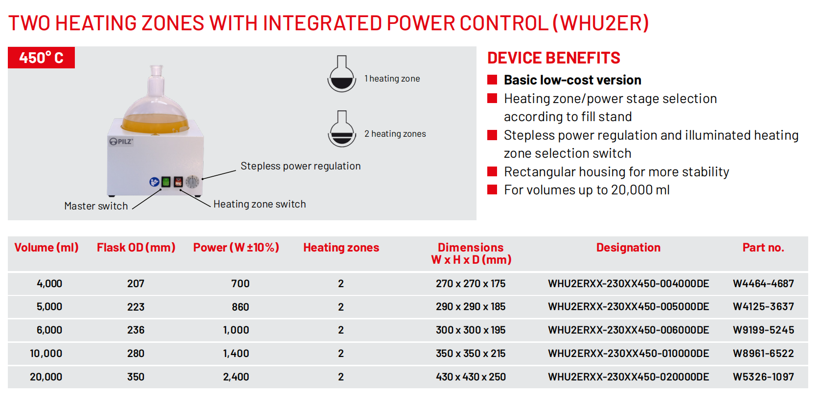 Winkler公司生产的PILZ®实验室加热器在日常实验室使用中已经证明了自身的可靠性与耐用性。这些加热器的温度范围可达到450°C,适用容器容量从4,000毫升到20,000毫升不等,因此具有极高的通用性。