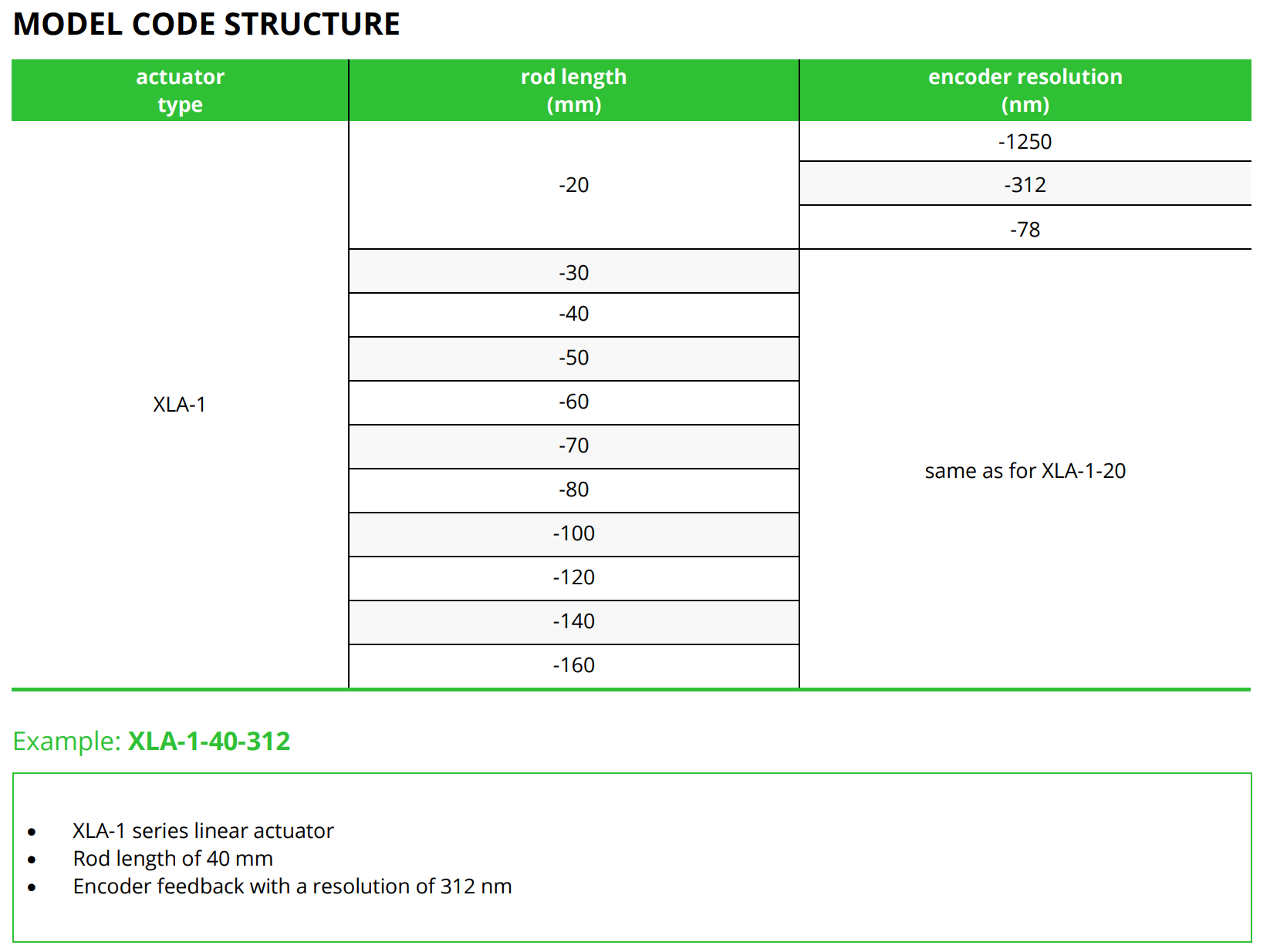 Xeryon XLA-1系列 微型线性执行器选型指导:
