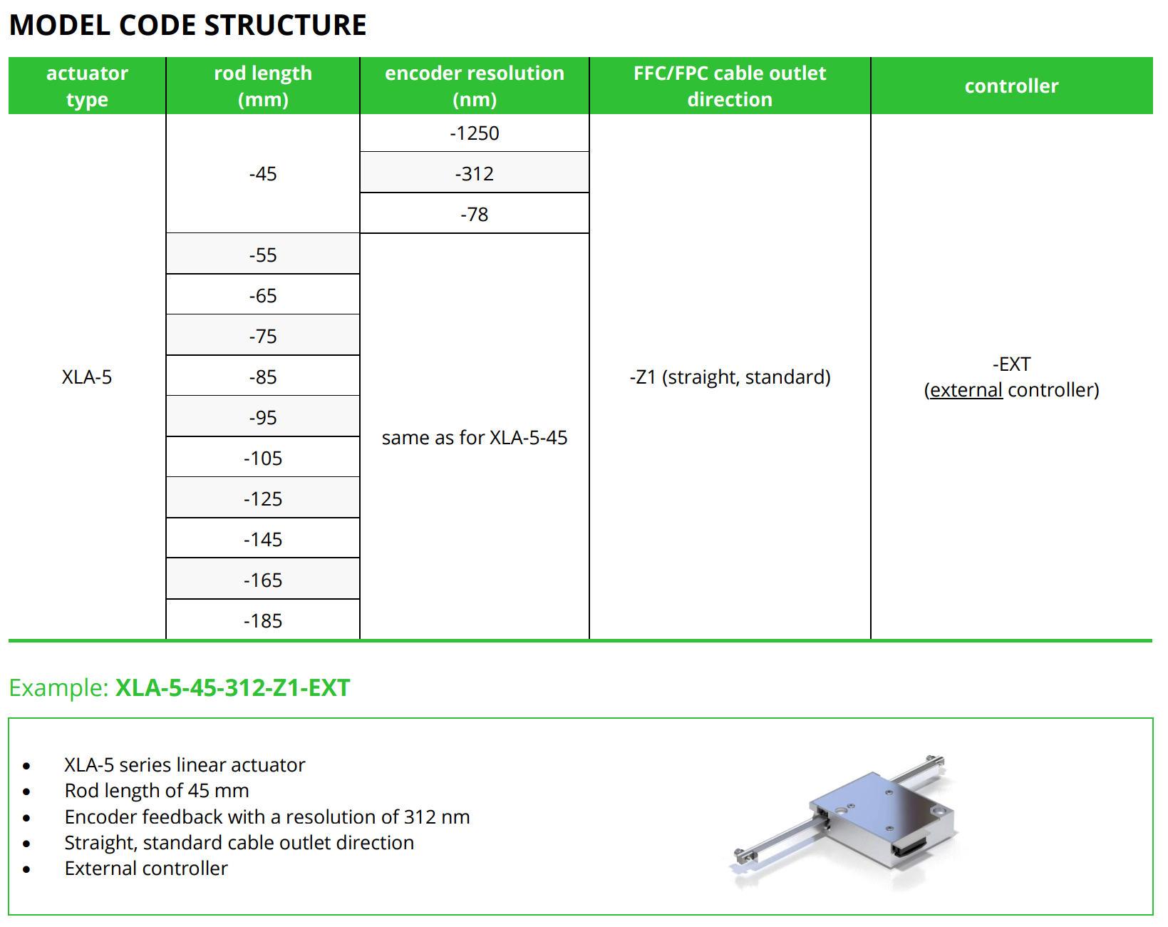 Xeryon XLA-5系列 微型线性执行器选型指导:
